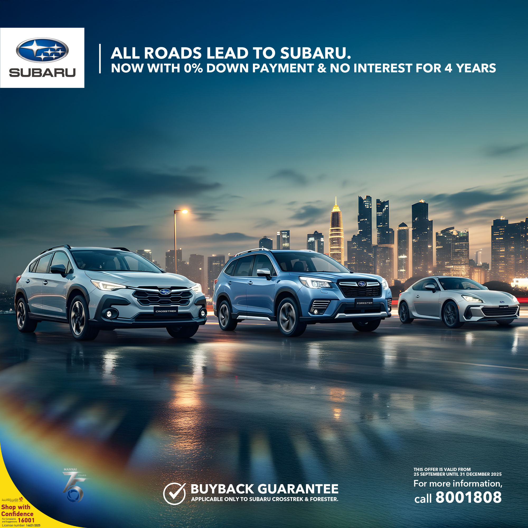 *T&C apply. 0% down payment, monthly payments for 4 years, finance is subject to Mannai credit management approval.** whichever comes first. Permit Number: 2025/8921