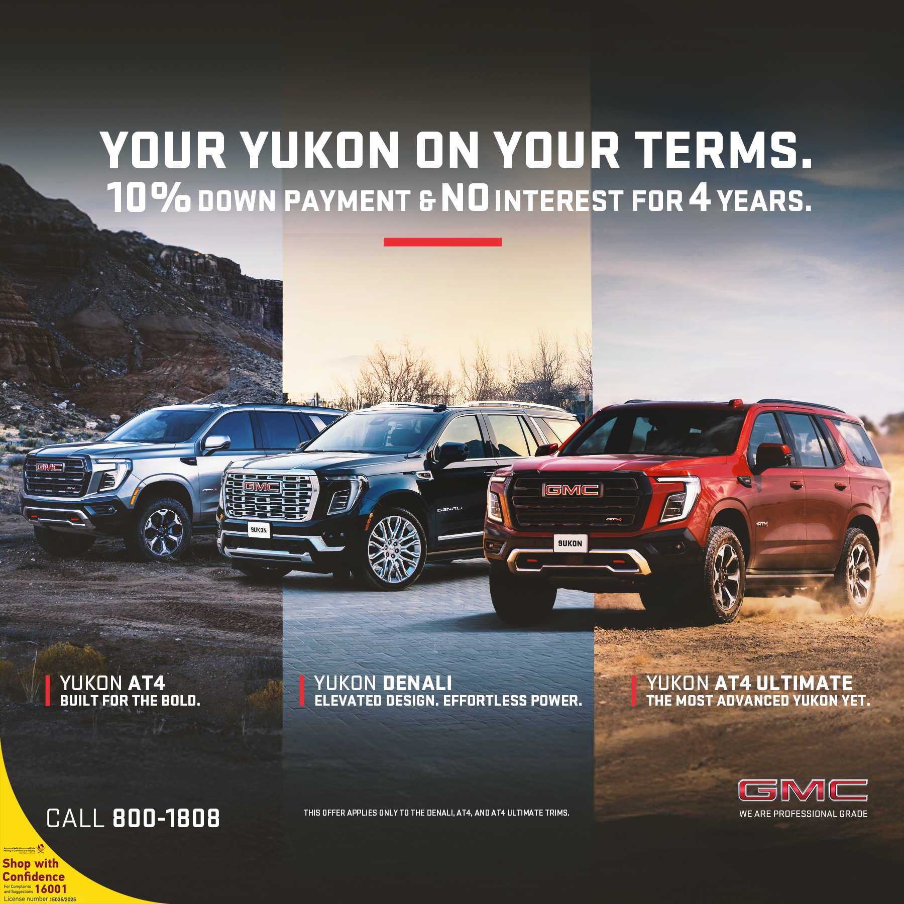 *Finance T&C apply. Finance is subject to Mannai credit management approval.**This offer valid exclusively for YUKON AT4 Ultimate and Denali trims. Permit Number 2025/12017